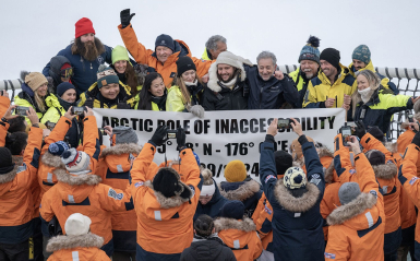 1927 überflog Hubert Wilkins mit seinem Flugzeug erstmals über diesen Pol, doch bis jetzt hatte noch nie jemand einen Fuß auf diesen Punkt gesetzt. Der historische Moment der Le Commandant Charcot wurde an Bord mit der gesamten Crew, dem Forschungsteam und den Gästen gefeiert.