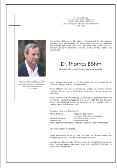 thomas böhm, ableben, abschied, parte, tod, verstorben, msc cruises, msc cruises austria, nachruf