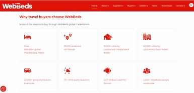 WebBeds wurde 2013 gegründet und ist ein globaler Marktplatz für die Reisebranche, der Vertriebslösungen anbietet, die den Verkauf und Kauf von Reiseprodukten erleichtern. Das Unternehmen bezieht Unterkünfte und Reiseziele von Reiseanbietern, sammelt und vermarktet diese Inhalte auf der WebBeds-Plattform und vertreibt sie dann an sein globales Netz von Reiseeinkäufern, die sie an die Reisenden verkaufen.