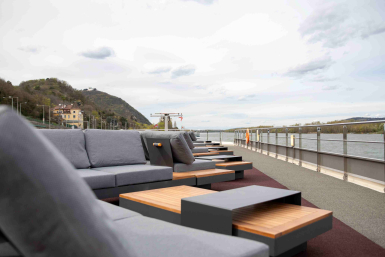 Während die MS Nestroy dann wieder flussaufwärts Richtung Wien gleitet, können Gäste an Bord höchsten Komfort an Bord genießen. Auf vier Decks bietet das Schiff eine stilvolle Panoramalounge, ein Restaurant mit Aussicht und ein modernes Fitnesscenter. Besonders beliebt ist das Sonnendeck, das mit bequemen Liegen, Lounge-Garnituren und einer Open-Air-Bar zum Verweilen einlädt. Ein Lift verbindet die Kabinendecks, während WLAN in den öffentlichen Bereichen verfügbar ist. So wird die Donaukreuzfahrt zu einer perfekten Mischung aus Entspannung, Kulinarik und unvergesslichen Erlebnissen.