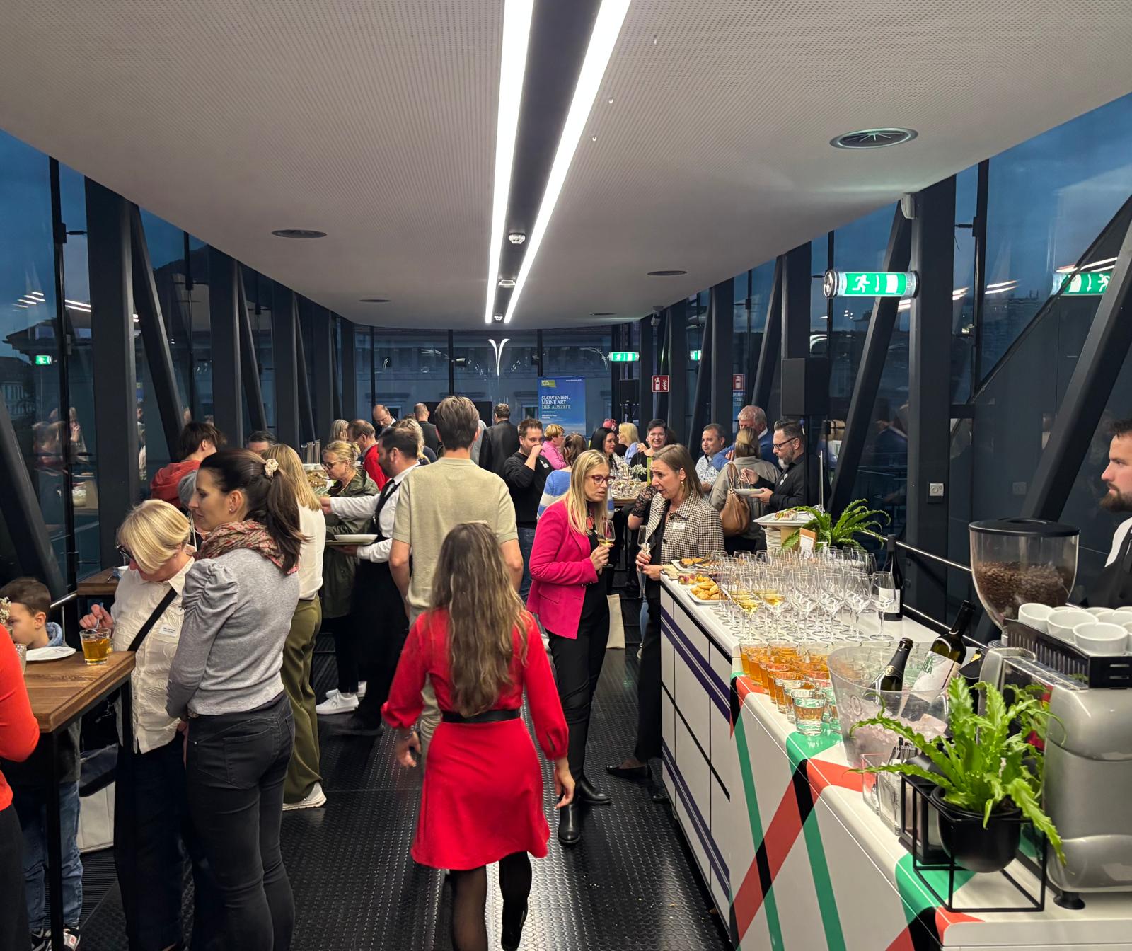 Bei slowenischer Kulinarik und ausgezeichneten Weinen nutzten die Gäste die Gelegenheit zum Netzwerken, für persönliche Gespräche und den Austausch über gemeinsame Projekte.