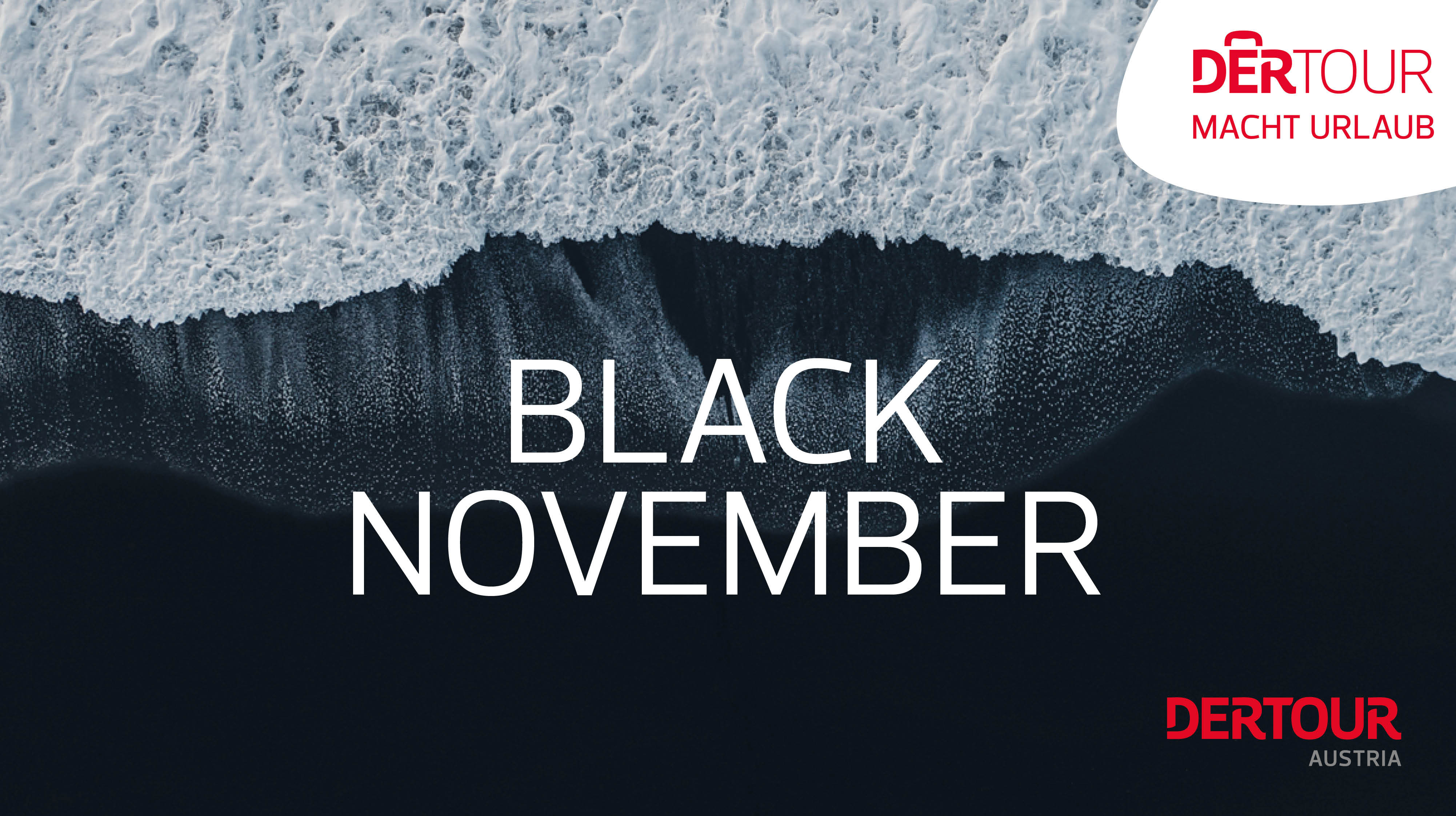 Dertour Austria verlängert den Black Friday zum Black November: Einen ganzen Monat lang warten Reiseangebote mit bis zu 50% Rabatt.