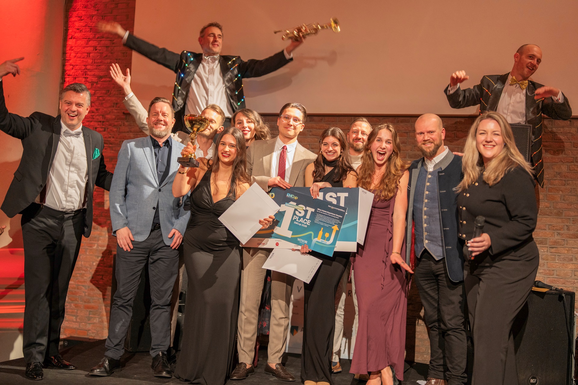 Der 18. EMCup fand am 15. und 16. Februar 2026 in Amsterdam statt und stand unter dem Motto „Changing Course – Cranking up the heat in F&B“. Die teilnehmenden Studierenden entwickelten innerhalb von zwei Tagen Konzepte für den Food-&-Beverage-Bereich von Hotels und präsentierten diese vor einer internationalen Fachjury. Das Siegerteam der FHWien der WKW – Laura Viscuso, Anahita Shirbaz, Marlon Geserick und Veronika Sophia Ober – überzeugte mit „OMA – Opportunity for More Authenticity“ und setzte sich gegen Teams von 28 Hochschulen aus ganz Europa durch.